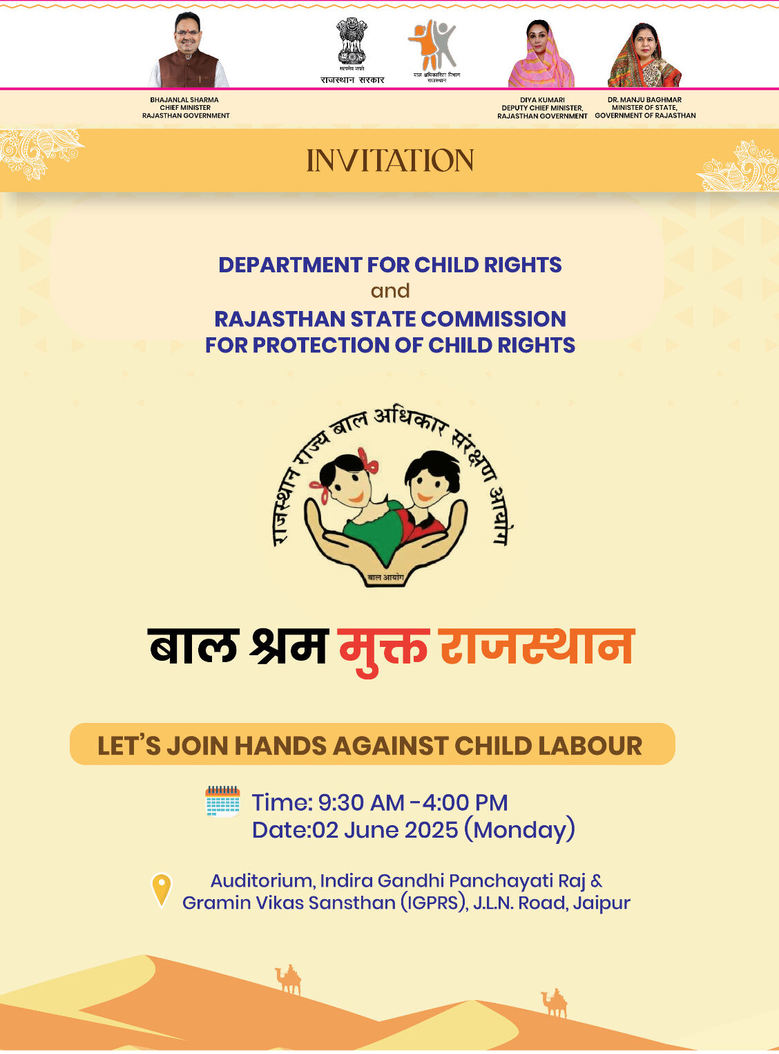विश्व बालश्रम निषेध दिवस पर संवादमय प्रशिक्षण कार्यक्रम का आयोजन 2 जून को May 31, 2025 No Comments Read More »