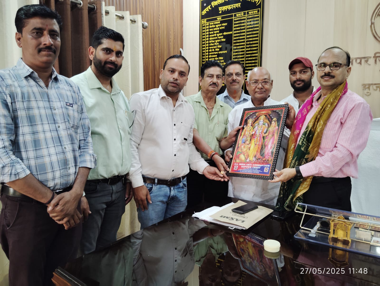 मुजफ्फरनगर: नवनियुक्त एडीएम प्रशासन संजय सिंह को ऑल इंडिया एंटी करप्शन सर्विस ट्रस्ट की टीम ने सम्मानित किया। इस अवसर पर जिला अध्यक्ष विक्की चावला, विपिन सिंगल, मो नदीम अंसारी, संजय गोस्वामी, रविकांत, सुरेंद्र कुमार, प्रवीन कुमार, सन्नी अहलुवालिया, नितिन बालियान, विजय प्रताप सिंह और हरीश ठखराल सहित कई सदस्य उपस्थित रहे।
