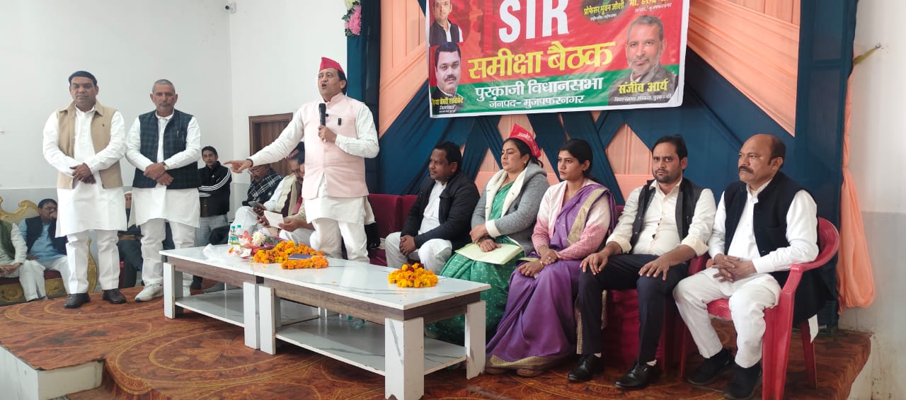 मुज़फ्फ़रनगर। समाजवादी पार्टी की पुरकाजी विधानसभा क्षेत्र की एसआईआर अभियान समीक्षा बैठक सिसौना रोड बागोवली स्थित वेंकट हॉल में आयोजित की गई। बैठक की अध्यक्षता सपा जिलाध्यक्ष जिया चौधरी एडवोकेट ने की, जबकि संचालन निवर्तमान विधानसभा अध्यक्ष पुरकाजी संजीव आर्य और सपा नेता साबिर हसन ने संयुक्त रूप से किया। बैठक में बड़ी संख्या में पार्टी पदाधिकारी और कार्यकर्ता मौजूद रहे।